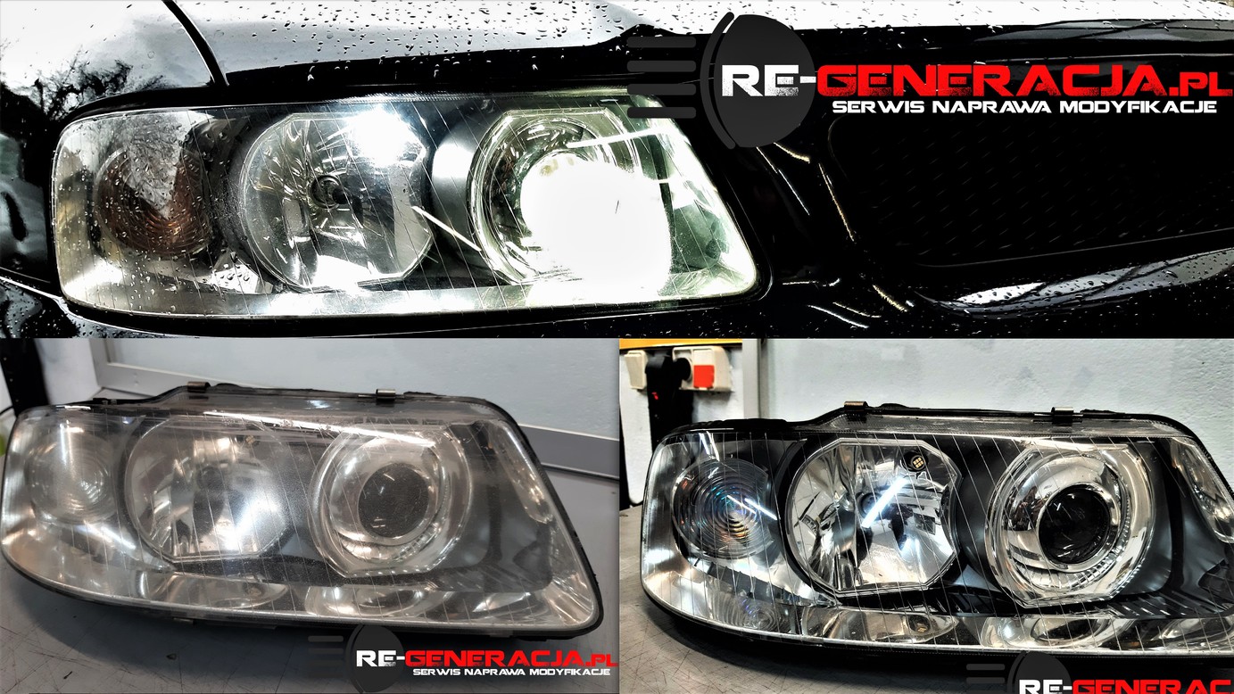Pacjent trafił na nasz stół operacyjny. Proces uleczania polegał na rozklejeniu reflektorów, kompleksowym oczyszczeniu wnętrza, wymianie uszkodzonych regulatorów, wyrzuceniu starych soczewek i zastąpieniu ich nowej generacji projektorami bi-xenonowymi - o niesamowitej optyce tnącej ciemność jak laser! Zakończeniem dzieła było